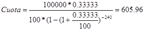 fórmula para el cálculo de la cuota mensual de una hipoteca.
